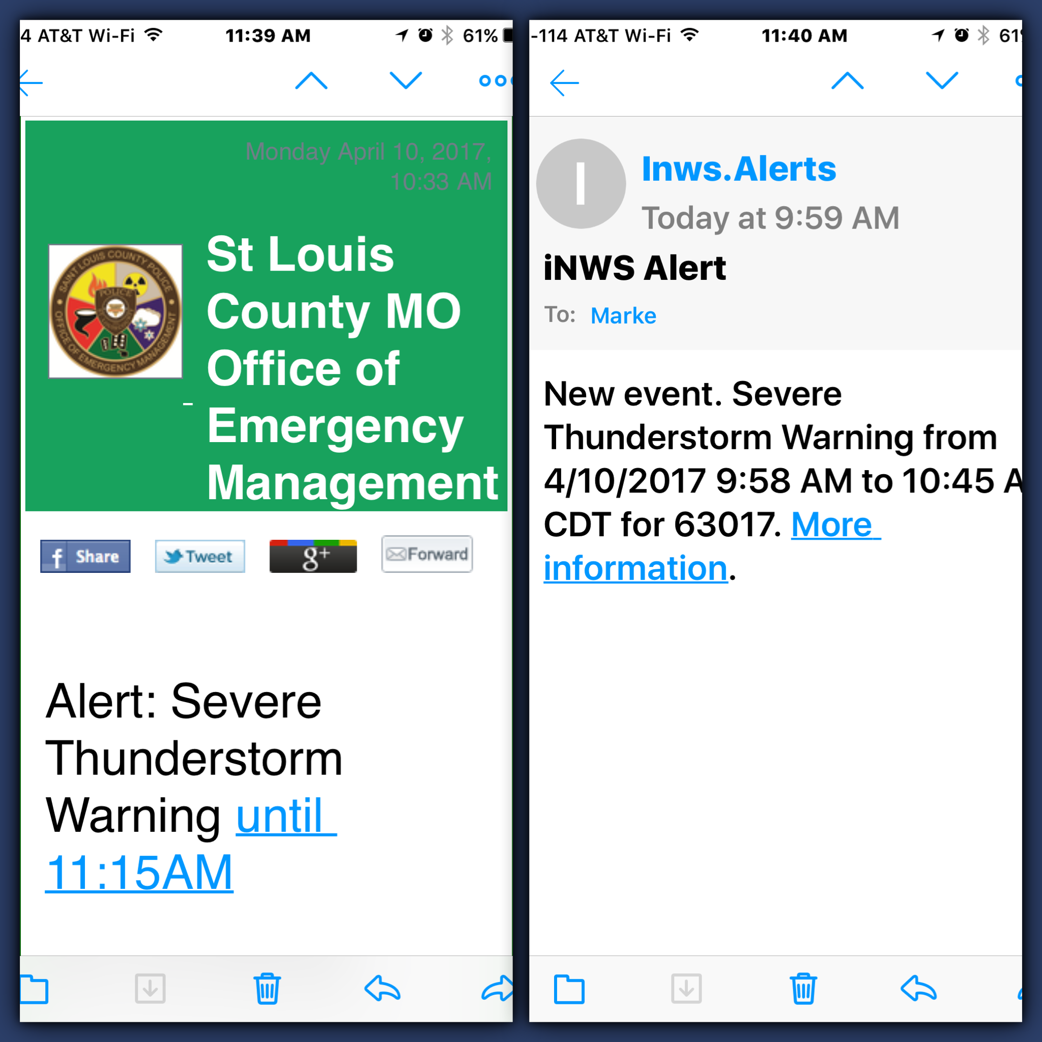 These are obviously screenshots from my phone, but you can scroll down for all the details of the message or click on the link to go to the details on a website. There are many services like these, I just prefer these two. Nixle also provides Amber Alerts, messages from local Law Enforcement, and more. All you have to do is text your zip code to them and you’re signed up.